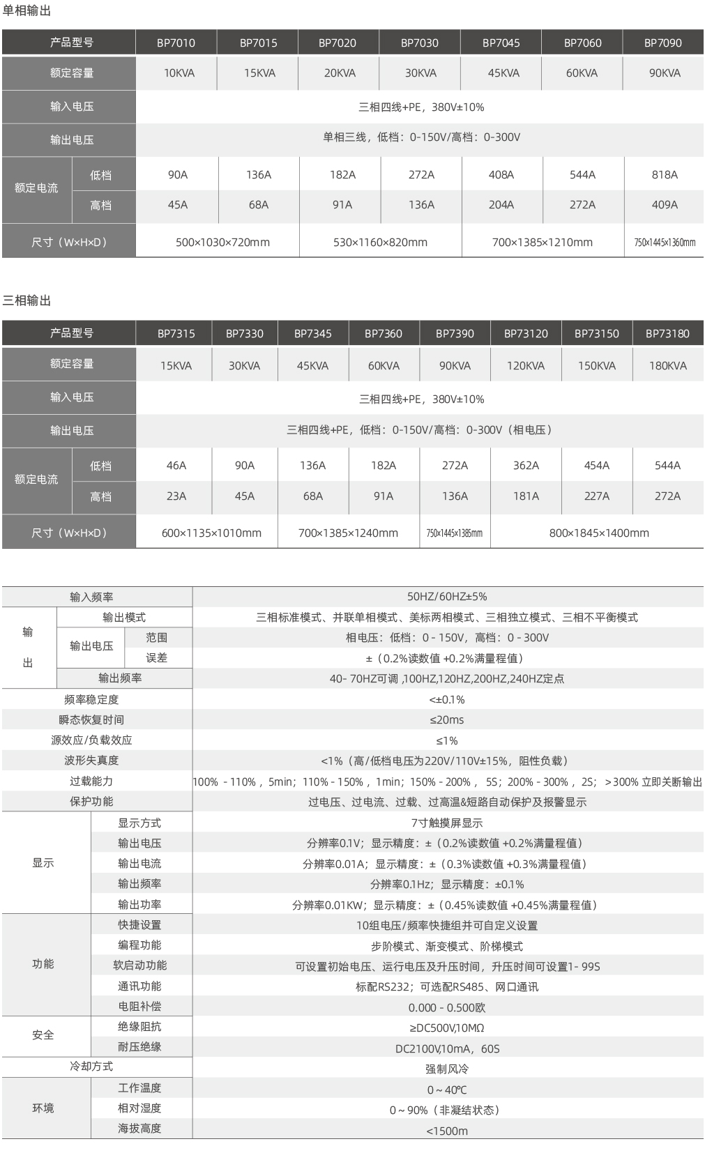 交流變頻電源BP7系列具有超低的輸出電壓THD%、3倍過載能力、List編程功能等特點。具有可視化的觸摸屏人機交互界面,操作便捷,信息顯示豐富。同時可選配RS232/RS485/以太網(wǎng)等遠程通訊接口,實現(xiàn)對變頻電源運行狀態(tài)的實時監(jiān)控。