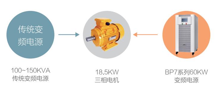 可達3倍/2S的過載能力,相同容量的電源可啟動更大功率的電機類負載,大大降低了測試成本。經(jīng)測試,60KVA的交流測試電源BP7系列可直接啟動18.5KW(啟動功率185KW)的電機。