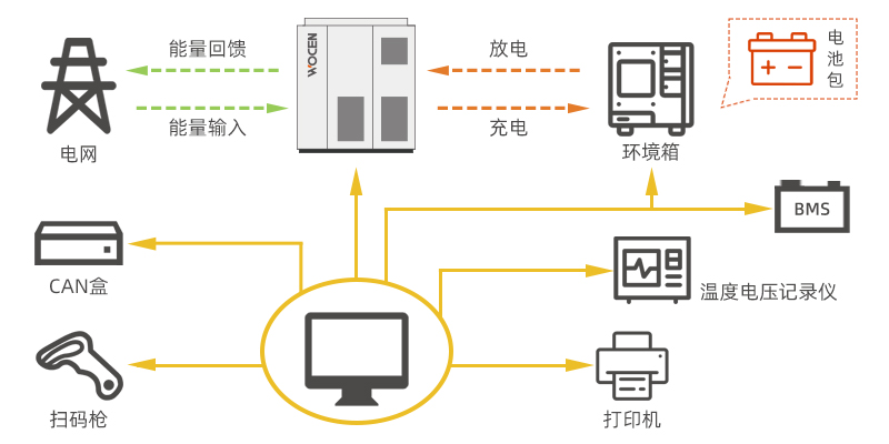 儲(chǔ)能電池充放電測(cè)試解決方案專為儲(chǔ)能電池充電、放電等測(cè)試而開發(fā)。針對(duì)儲(chǔ)能電池的研發(fā)設(shè)計(jì)、試驗(yàn)驗(yàn)證、生產(chǎn)下線檢測(cè)而設(shè)計(jì)的一套便捷的自動(dòng)化測(cè)試系統(tǒng)。主要包含充放電測(cè)試電源、掃碼槍、工控機(jī)及測(cè)試系統(tǒng)軟件,可集成環(huán)境箱、冷水機(jī)、輔助采樣通道、打印機(jī)等多種試驗(yàn)設(shè)備。應(yīng)用于大型儲(chǔ)能電池企業(yè)、車企、研究機(jī)構(gòu)實(shí)驗(yàn)室等。